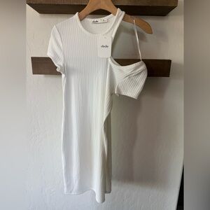 Elodie|White Ribbed Women's one shoulder cut-out Dress,minimalist style•••NWT