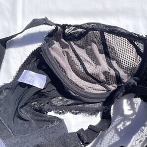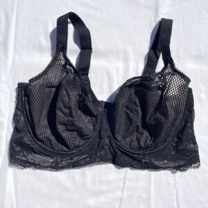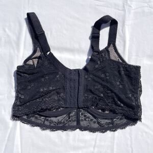 Elomi Charley Longline Lace Mesh Bralette Plunge Bra 34J Black EL4381 Underwire