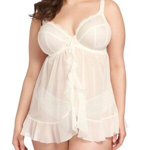 This plus size negligee offers maximum support and features an exquisite open front with a flirty ruffle trim that gives a stunning, feminine look. The multi-part cups fit like a supportive bra and let's face it, those of us with full busts need all the support we can get. Whether you're looking for the perfect bridal lingerie for your wedding night or just want to spice it up a bit for date night, bring a little romance to your bedroom in this seductive bra-sized lingerie designed specifically for DD+ cup sizes.