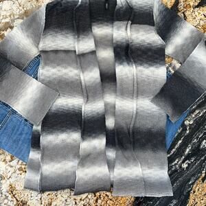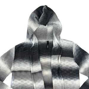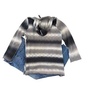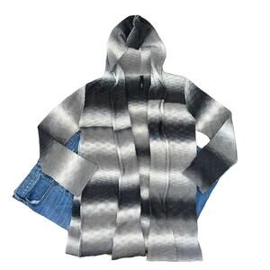 Elon Grey, Black and White Striped Hooded Open Cardigan - SIZE MEDIUM
