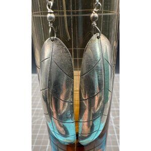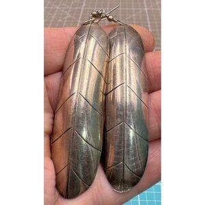 Pictured is a pair of Elongated Southwestern Sterling Leaf Earrings signed SC