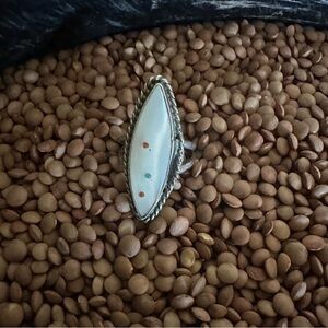 Elongated Vintage Zuni Inlaid Mother of Pearl Sterling Ring.