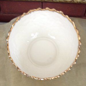 Beautiful White Bowl embossed with leaves and gold trim around the edge