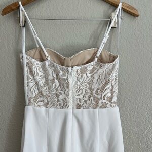 Eloquently Enticing White and Beige Lace Bustier Jumpsuit