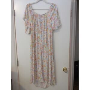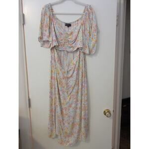 Eloqui Womens Floral Pastel Cut Out Dress size 16 Flutter Sleeve Slit Bottom