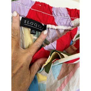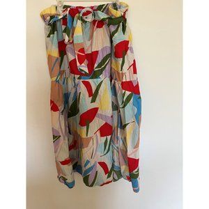 What a fun skirt! Whirl around and be beautiful!. Stretch elastic waist. 1 slit on side. Cloth belt with buckle. 38 " waist to hem.