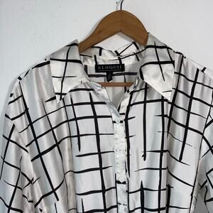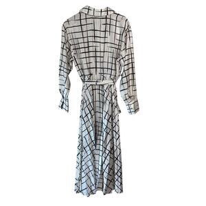 Eloquii 14 Windowpane Pleated Dress Belted Long Maxi White Black Check Career