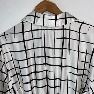 Color: White with black windowpane check pattern