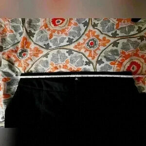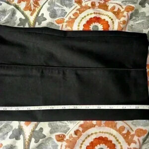Made out of scuba-like fabric, slim leg and stretchy but keep their shape. A single pinstripe down the front of the legs. Ankle length (see photos for measurements). Very comfortable-I have them in a different size in 3 colors and wear them all the time. NWT.