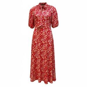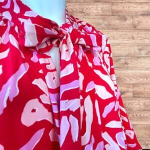 Eloquii Abstract Tie Neck Midi Red and Pink Plus Size Dress Demure Size 24