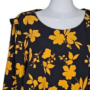 Tags: Eloquii dress, Balloon sleeve dress, Floral print dress, Crew neck dress, Black dress, Yellow dress, Size 20 dress, Women's dress, Plus size dress, Eloquii size 20, Floral women dress, Black yellow dress, Chic dress
