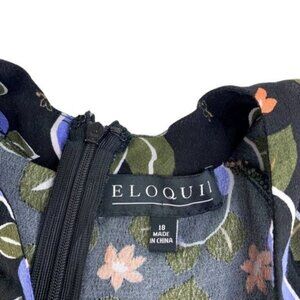 Eloquii Black Floral Cropped Tie Waist Top. Size 18. Crewneck. Back zipper closure. Butterfly sleeve. Blue, orange, and green accents. Excellent used condition.