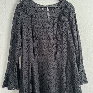 Eloquii Black Lace Bell Sleeves Ruffle Mini Dress Witchy Goth Whimsygoth Size 16