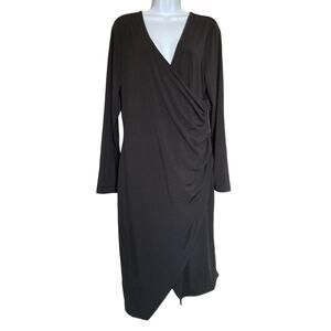 NWT Eloquii Black Long Sleeve Faux Wrap Dress Ruched Side Surplice Neck Plus
