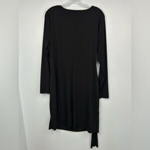 Eloquii Black Long Sleeve Side Tie Midi Dress Silky Smooth Rounded Neckline 16