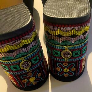 Eloquii Black Mules Size 8 Medium with Decorative Embroidered Block Heels NWOT