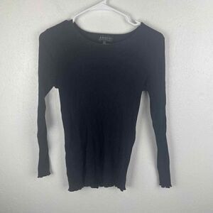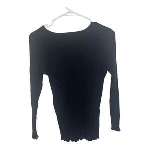 Eloquii Black Ribbed Lettuce Hem Long Sleeve Shirt Very Stretchy Size 14/16
