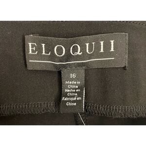 Elevate your fashion game with this stunning black strapless jumpsuit from Eloquii. This one-piece garment features a pullon closure and is made of a blend of polyester and spandex, with a rayon fabric type that adds to its elegance. The jumpsuit is designed to fit regular size 16, with a straight leg style and a 32-inch inseam. 18 inches across the top. Stretch. Elastic at top.