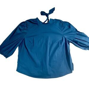 Eloquii Blouse Top Woman 18 Blue Elastic Cuffs Tie Back Plain Front w/ Darts