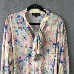 Eloquii Blouse Womens 24 Floral Tie Neck Bow Long Sleeve Button Front Plus Size