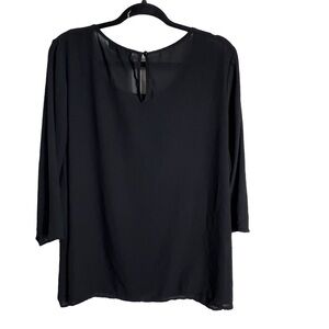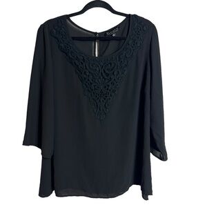 Eloquii Blouse Women's Size 24 Embroidered 3/4 Sleeve Black Keyhole Back