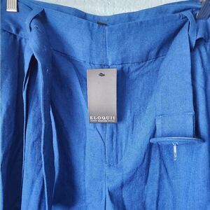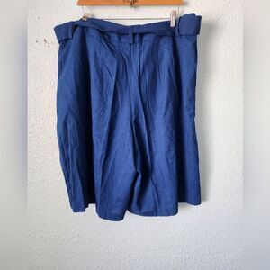 Chic blue high-waisted shorts by Eloquii. Features a stylish tie belt.
