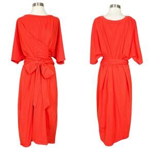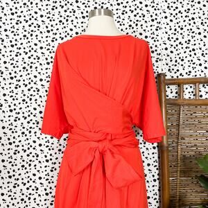 Eloquii | Bold Orange Plus Size Tie Waist short Sleeve Midi Dress 20