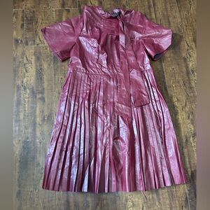 Eloquii burgandy Pleather Pleated Skirt Midi Dress With Stretch & Zippered Back