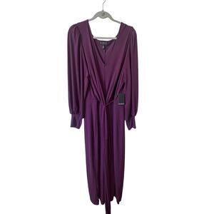 Elevate your wardrobe with this stunning Eloquii wrap-style midi dress in a rich deep purple hue. Designed with a flattering ruched waist, draped V-neckline, and long bishop sleeves, this dress exudes elegance and sophistication. Perfect for weddings, cocktail parties, formal events, or stylish workwear.