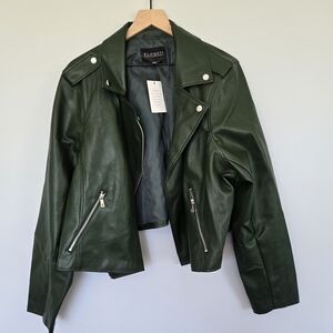 Eloquii Dark Green Vegan Leather Moto Jacket Size 26/28
