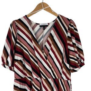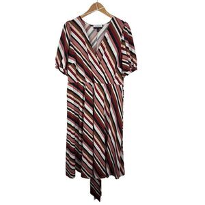 Eloquii Dress Elements Striped Faux Wrap Midi Women's Size 18 Plus Tie Waist