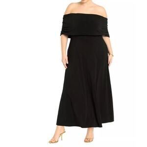 Eloquii Dress Size 28 NWT Off the Shoulder Maxi Jersey Black Plus Curvy Evening Cocktail Formal