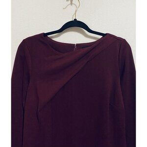 Eloquii Dress Womens 14 Burgundy Pleated Front Sheath Long Sleeve Work Career
