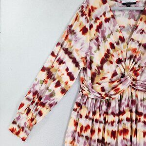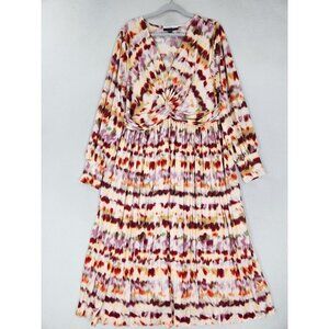 Eloquii Dress Womens Elements Plus Size 22/24 Cream Purple Knot Front Long Sleeve Flowy Midi Casual. In very good pre-owned condition. No flaws noted.