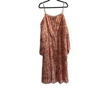 Eloquii Elements 22 Peach Animal Paint Pleated Off The Shoulder Midi Dress NWT