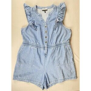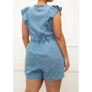 Eloquii Elements Chambray Denim Flutter Sleeve Jean Romper Women's Size 22 Medium Wash