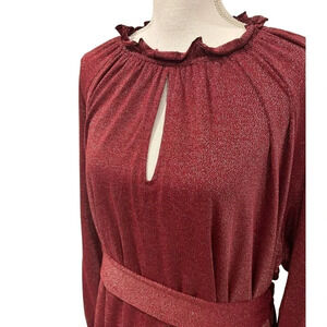 Eloquii Elements Long Sleeve Shimmer Tie Waist Dress