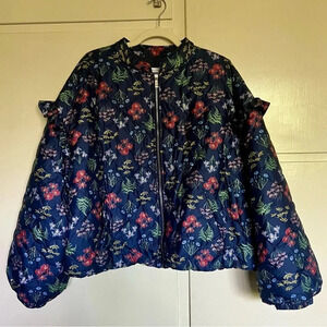 Eloquii Elements Navy Blue Floral Quilted Puffer Bomber Jacket Plus Size 22/24