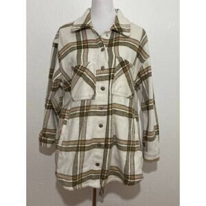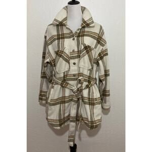 Eloquii Elements Size 14/16 Cream Tan Plaid Wool Blend Shacket with Belt Pocket