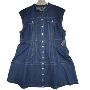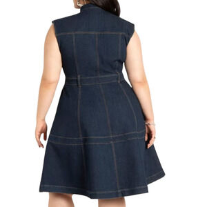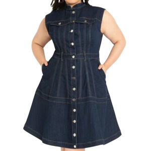 Eloquii Fit & Flare Denim Dress sz 28 Women Dark Blue Pockets Sleeveless NEW