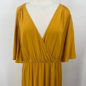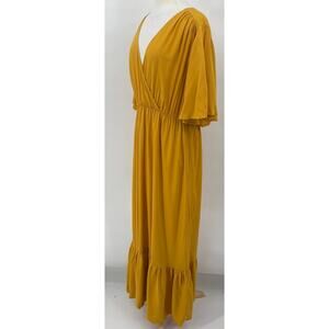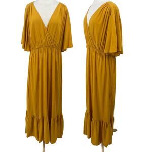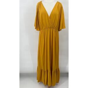 Eloquii Fit & Flare Dress V Neck Elastic Waist Maxi Mustard Gold NEW Womens 16