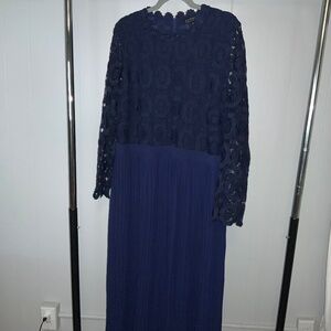 Eloquii Formal Maxi Evening Dress Navy Mother of the Bride Sz 20 Pleated skirt