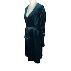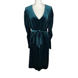 Eloquii Green Velvet Dress – Size 20 – Belted Long Sleeve V-Neck – Holiday Party Ready