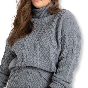 Eloquii Grey Turtleneck Slouchy Cable-knit Sweater - Size 14/16 (XL)