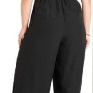 Black halter neckline wide split leg jumpsuit. Ties around neck for max fit. Tulip hem side wide leg detail. NWT, never worn. excellent condition.