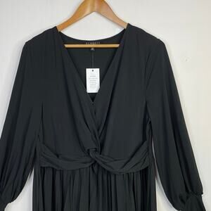Eloquii Knot Front Pleated Skirt Midi Dress in Black, women’s plus size 18. New with partial tags. Has return prevention tag but not a retail price tag.