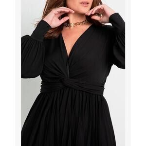 Eloquii Knot Front Pleated Skirt Dress Black Stretch Jersey Knit Long Sleeve 18