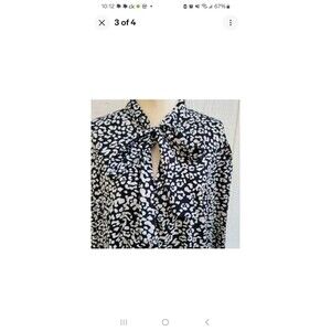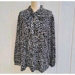 Eloquii Leopard Print Button Down Tie Neck Long Sleeve Top Women’s Plus Size 22