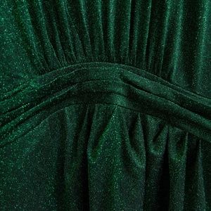 Glittery, shimmery Lurex dress from Eloquii. Black and green. Gathering at the waist and wrists. Long dollar style sleeves. Wrap style skirt. Pull on. Shoulder pads. Has stretch. NWT. In excellent condition. Size 20. Measurements are taken one side, laid flat. Shoulder to hem: 40" Waist: 20"