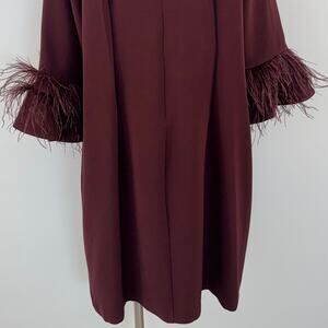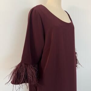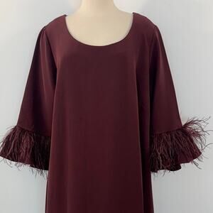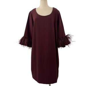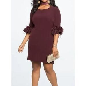 Eloquii Maroon Feather Sleeve Trim Dress Knee Length Scoop Neck Size 20 NWT